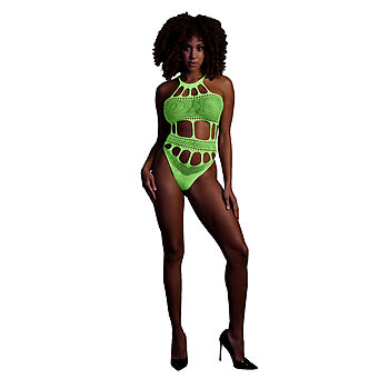 Ouch – UV-valossa hohtava body, vihreä, joustava, pehmeä, monikäyttöinen, seksikäs